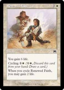 ‘Vuilnisbakkenras #5: The Judgment and Onslaught of Fallen Empires' (70 kaarten: plains/swamps/mountains: 30 lands, 20 creatures, 20 overig): Ik vond het een mooie uitdaging om mezelf te limiteren tot kaarten uit een aantal sets (hier: Judgment, Fallen Empires en Onslaught – behalve de basic lands want ‘who cares?’). Dit is het resultaat; alles in dit deck had ik toevallig nog liggen, en ik zal een aantal andere decks maken (ook gelimiteerd tot een aantal specifieke series) als tegenhangers. Zo gebruik je meer kaarten die je anders niet vaak zou gebruiken, en krijg je hopelijk grappige spelletjes tussen niet-helemaal-gefinetunede decks :-). Dit deck heeft als soortvan strategie: mijn levensaantal verhogen terwijl je het kaartentotaal van de tegenspeler vermindert. Ondertussen kan je een verdienstelijk leger opbouwen, mede dankzij enige manafixers. Met 'dirge of dread' kan je daarmee bij menig vijand flink doorstoten.