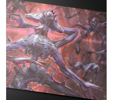 Een playmat van Duskmourn: House of Horror met art van de kaart Overlord of the Balemurk.
